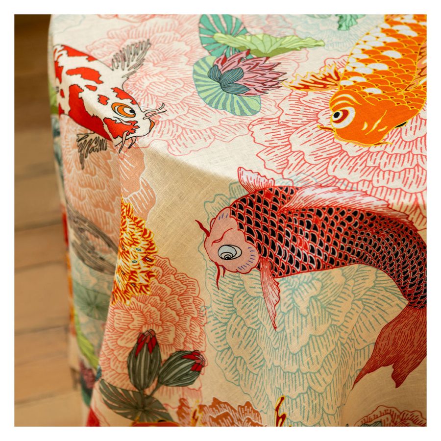 a HILL – Tablecloth Block Print, Apricot Rose 145×220 cm