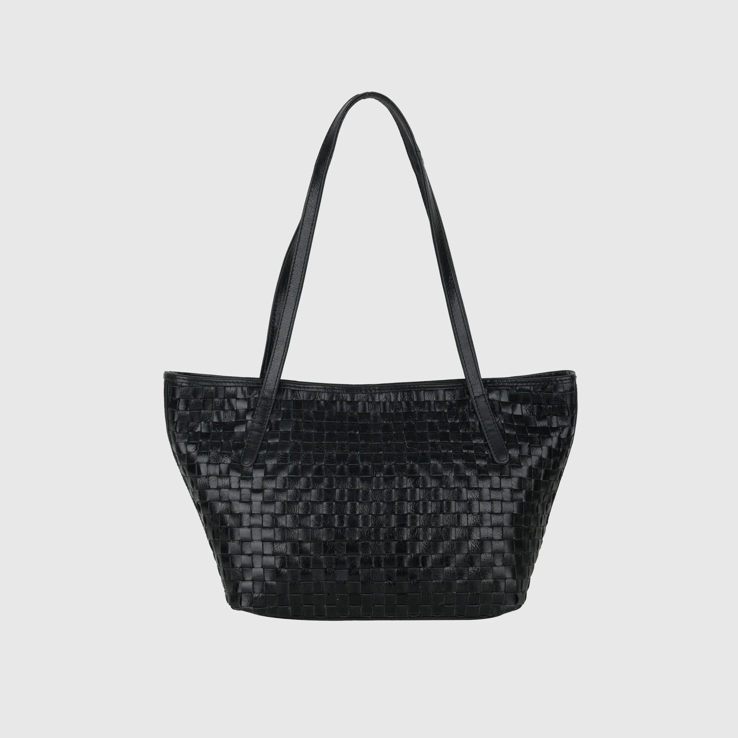 Denna shopper har en flätad design med axelremmar. Väskan består av ett stort fack och en innerficka. Väskan stängs med magnetknappar.