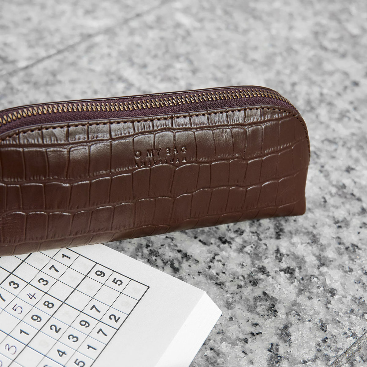 Vår rymliga arbetskamrat är tillbaka i en djup och elegant Chocolate Croco. Large Pencil Case rymmer allt från pennor och markers till sladdar och kosmetika – perfekt för att hålla dina saker organiserade med stil. Oavsett om den används på skrivbordet eller i väskan ger detta fodral dig enkel ordning var du än är.
