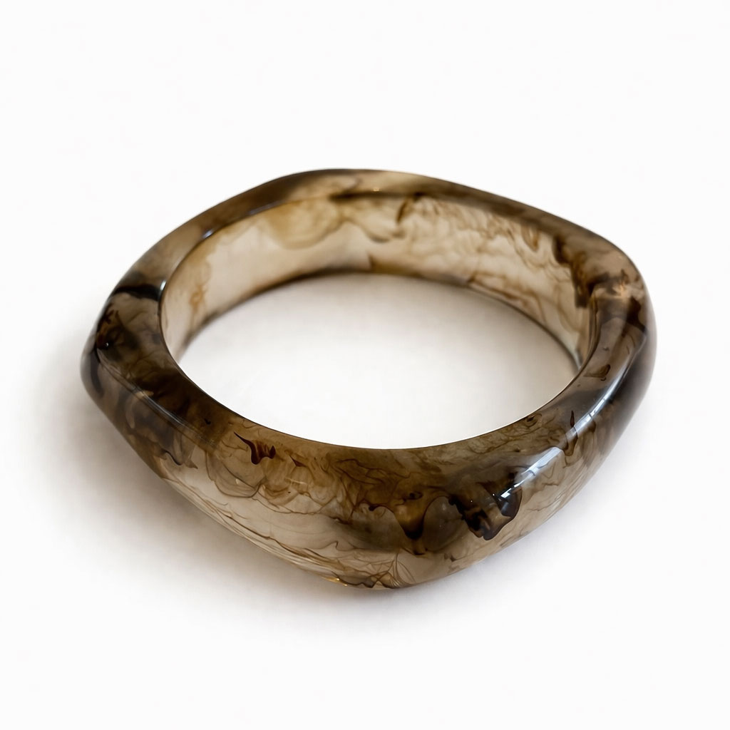 Ett statementarmband i resin med mjukt skulpterad form och levande, marmorerade skiftningar. Varje armband är unikt – inga två är exakt likadana.