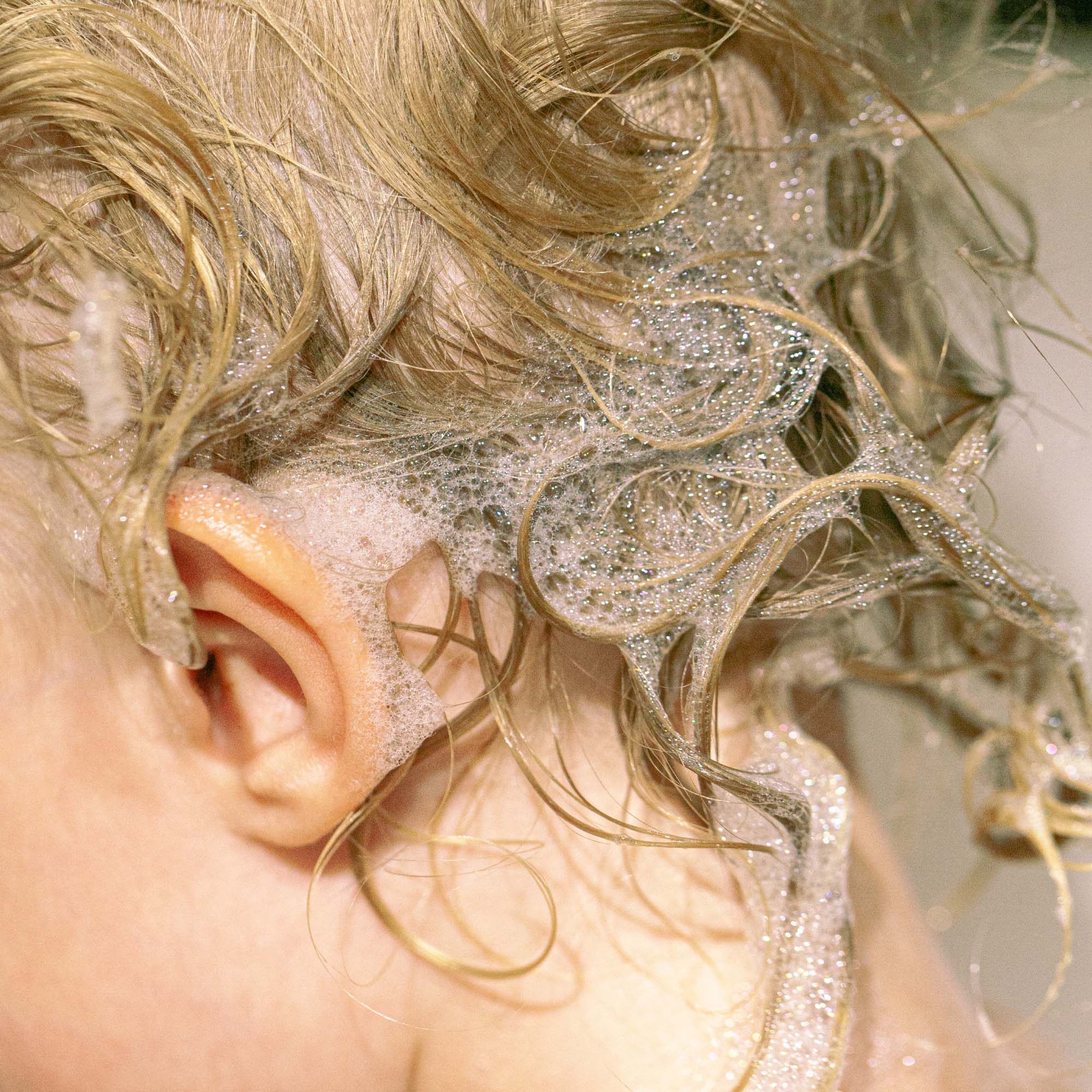 Massera in en liten mängd i vått hår och skölj sedan väl. Undvik kontakt med ögonen.