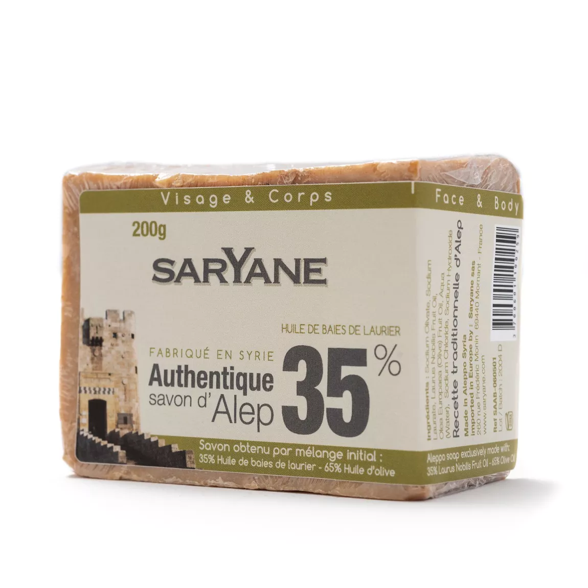 Utforska den autentiska skönhetsvärlden med vår Aleppo-tvål med 35% lagerbärsolja och upplev den härliga känslan av naturlig vård och tradition.