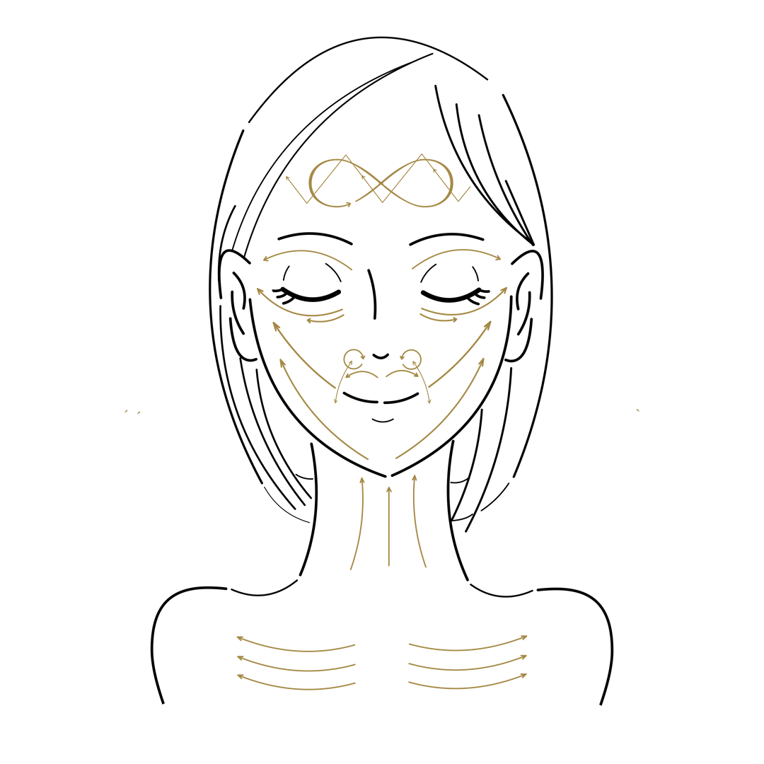 Säkerställ att ansiktet är ordentligt rengjort och varsamt torkat. Ta några droppar av din favorit-ansiktsolja och applicera på ren hud. Börja därefter din ansiktsmassage med Kansa Wand.