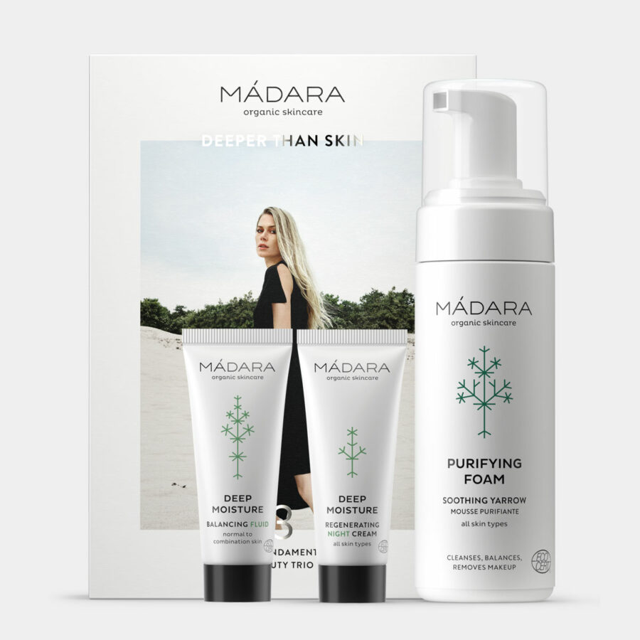 Upptäck MÁDARA eller prova en produkt som är ny för dig med detta set bestående av 3 essentiella skönhetsprodukter till priset av 1. Setet innehåller: