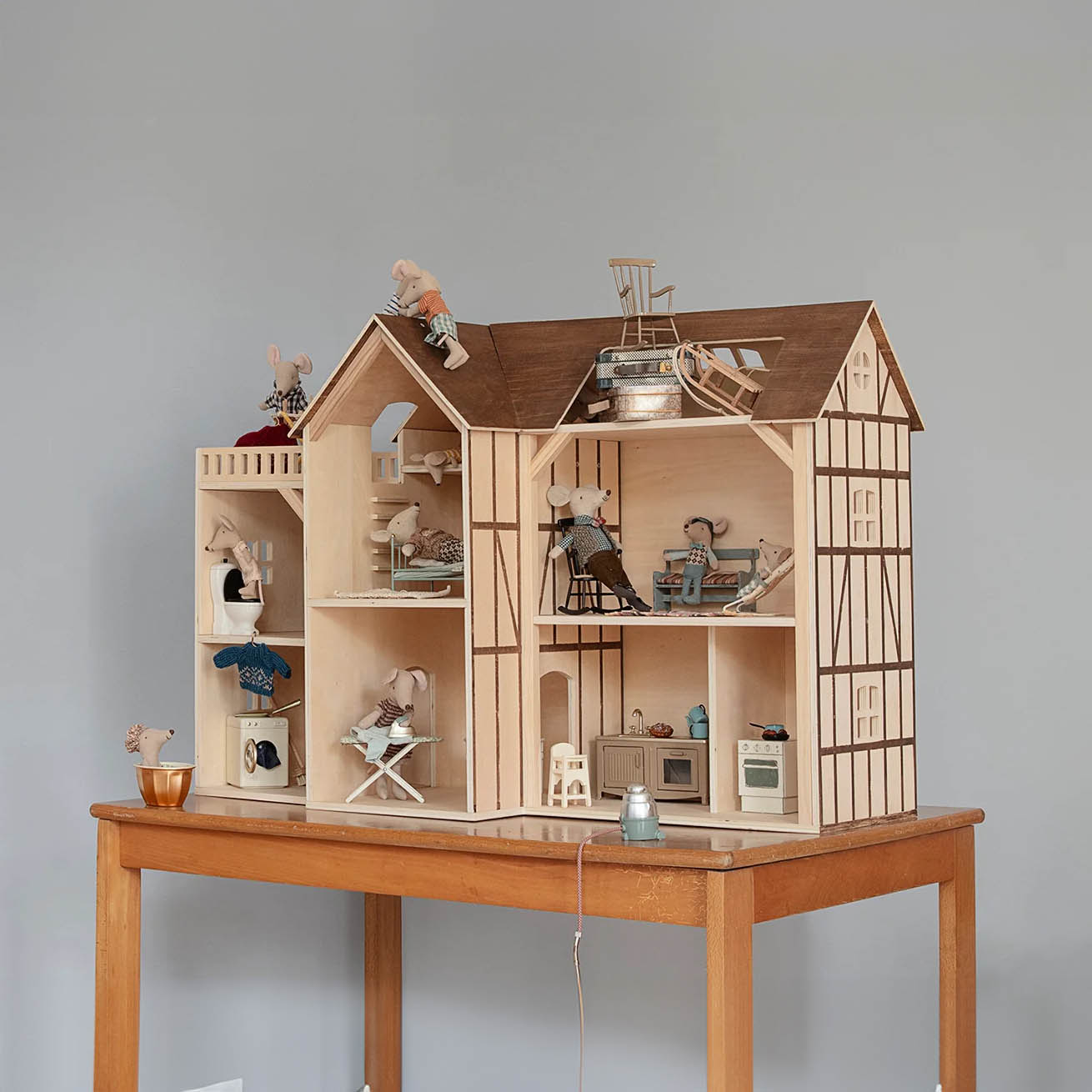 Mus hål Farmhouse är det perfekta hemmet för din musfamilj. Dekorera varje rum med dina favoritmöbler och accessoarer. Om huset blir för litet kan du lägga till bonusrummet. HUSET KOMMER UTAN INNEHÅLL.
