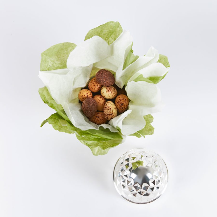 Äggen är fyllda med årets ekologiska chokladpåskägg.
