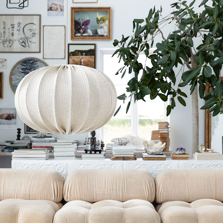 Moon i en klassisk uppdaterad form tillverkad i ett grövre tyg som ger ett varierande uttseende, tänd som släckt. Upphängning ingår inte.