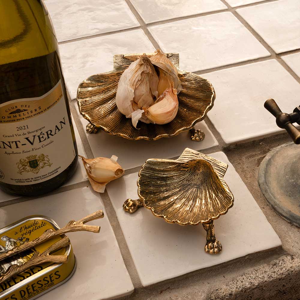 Kliv in i kustvibben med den stora Scarlett Shell Plate, en iögonfallande del från vår Sunray Souvenirs Collection. Kärleksfullt handgjord av vårt team av konstnärer i Indien, fångar denna mässingsprydnadsplatta havets essens med sin skalform och textur. Det är en rymlig och dekorativ plats för alla dina samlade kuriositeter.