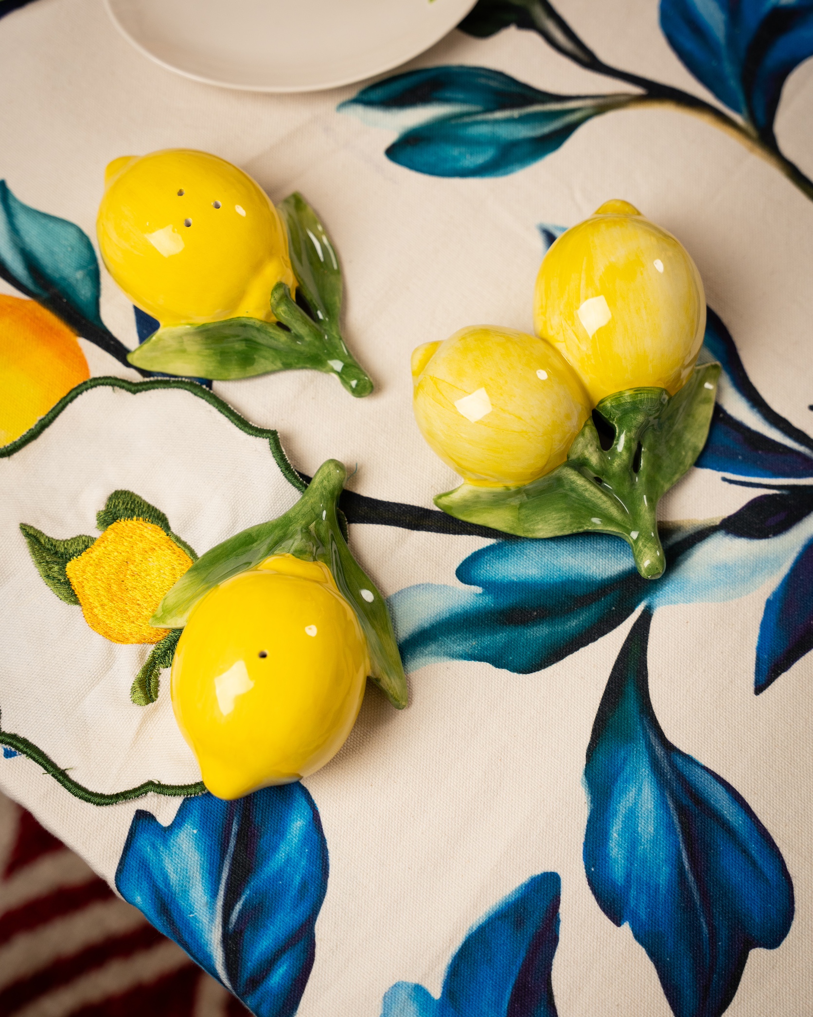 Lemon-kollektionen från Les Ottomans är en hyllning till medelhavscharm och hantverk och ger dig den livfulla känslan av solkyssta citrusodlingar. Denna raffinerade kollektion inkluderar ett komplett utbud av porslin, från handmålade italienska porslins- och serviser till matchande dukar, underlägg och bordsunderlägg, alla prydda med handmålade citronmotiv och invecklade detaljer. Keramiken är tillverkad av skickliga hantverkare och uppvisar rikt texturerade penseldrag, livfulla nyanser av gult och grönt samt delikata accenter, vilket frammanar den tidlösa skönheten hos italienska bord. Oavsett om det är en elegant sommarmiddag eller en intim sammankomst, ger dessa föremål en touch av värme och sofistikering till alla tillfällen. Para ihop keramiken med matchande broderade dukar och hantverksmässiga bordsunderlägg för att fullända dukningen och skapa en harmonisk bordsdukning som förkroppsligar en fusion av maximalistisk design och Les Ottomans distinkta kulturarv. Djärv men sofistikerad, denna kollektion är designad för dem som älskar att underhålla med stil och fira bordskonsten.