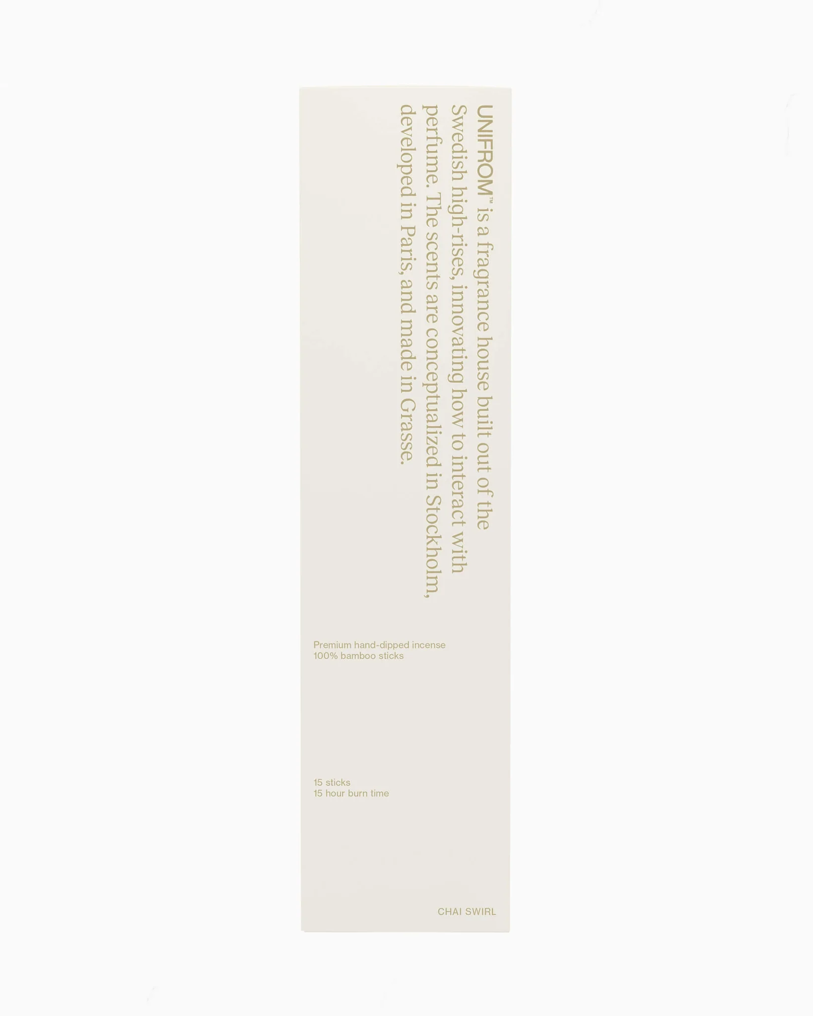 Vi presenterar Chai Swirl Incence. Inspirerad av den lugnande doften av te. Denna fängslande blandning kombinerar de aromatiska tonerna av svart te, vanilj och muskotnöt, vilket skapar en lugnande och elegant doft i alla utrymmen.