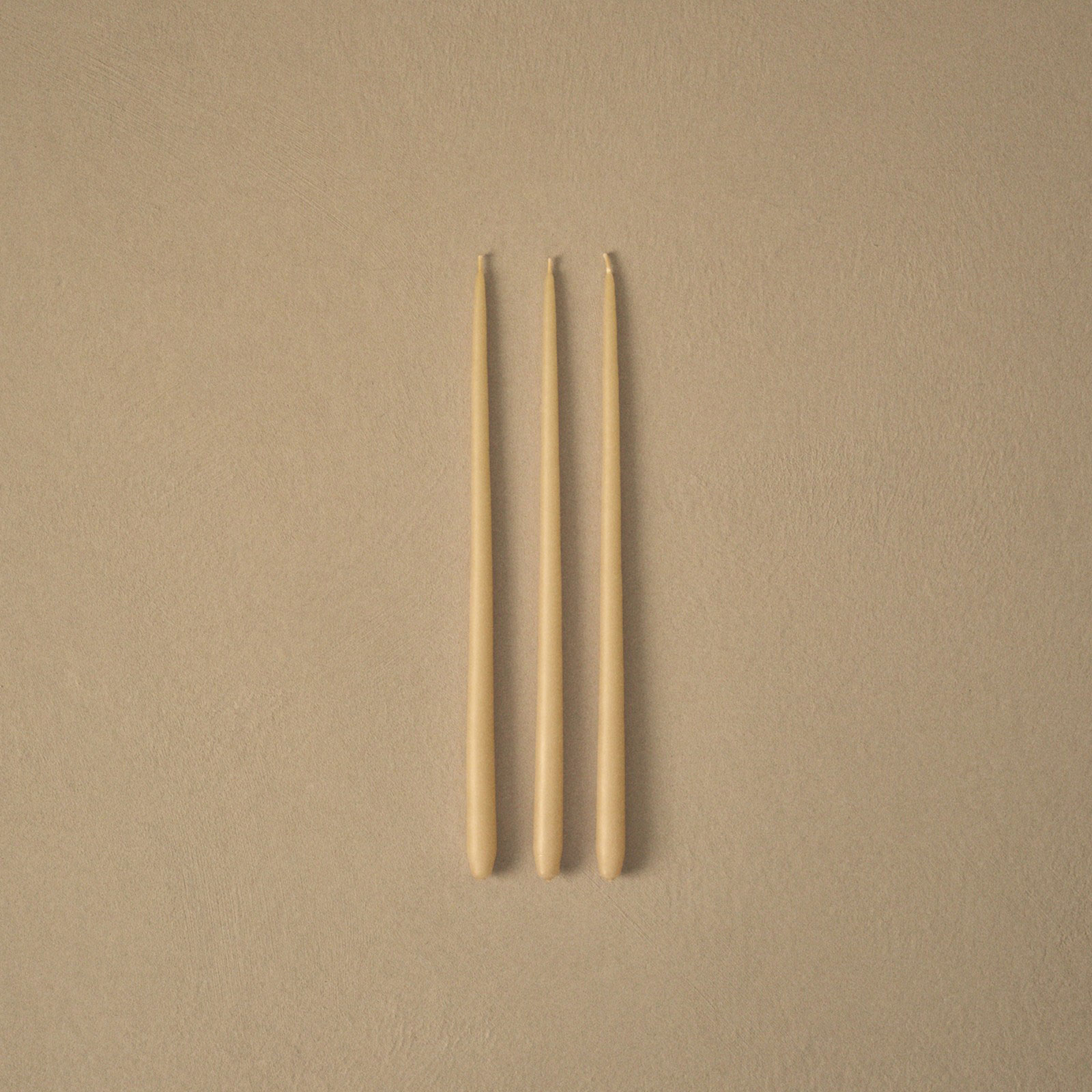 De exklusiva, handfärgade STOFF ljusen från danska Ester & Erik har en lång och elegant form med en konformad botten som gör att de passar perfekt i STOFF Nagel-ljusstakarna. Ljuset är droppfritt, självsläckande och brinner långsamt och elegant ut utan att lämna rester i ljushållaren.