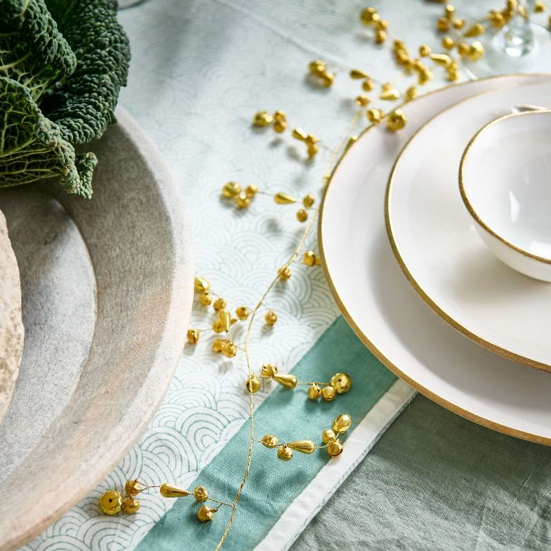 Guldfärgad girlang med små klockor, den perfekta juldekorationen.