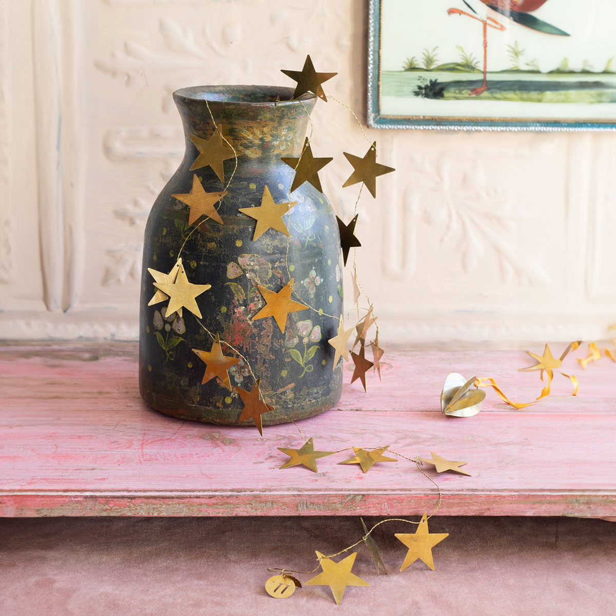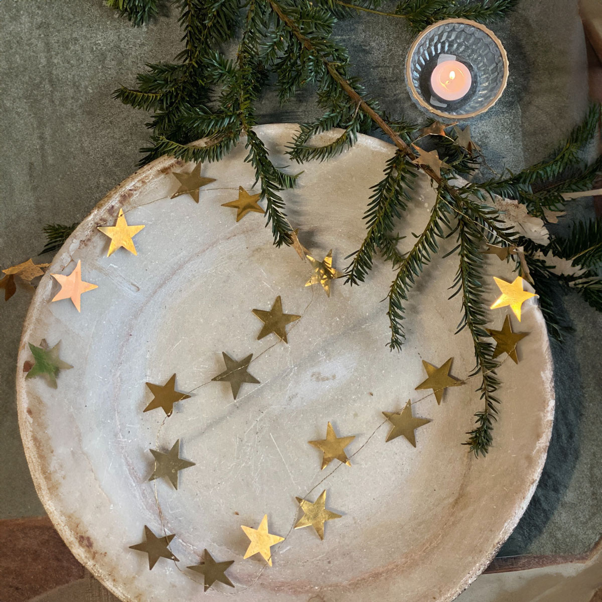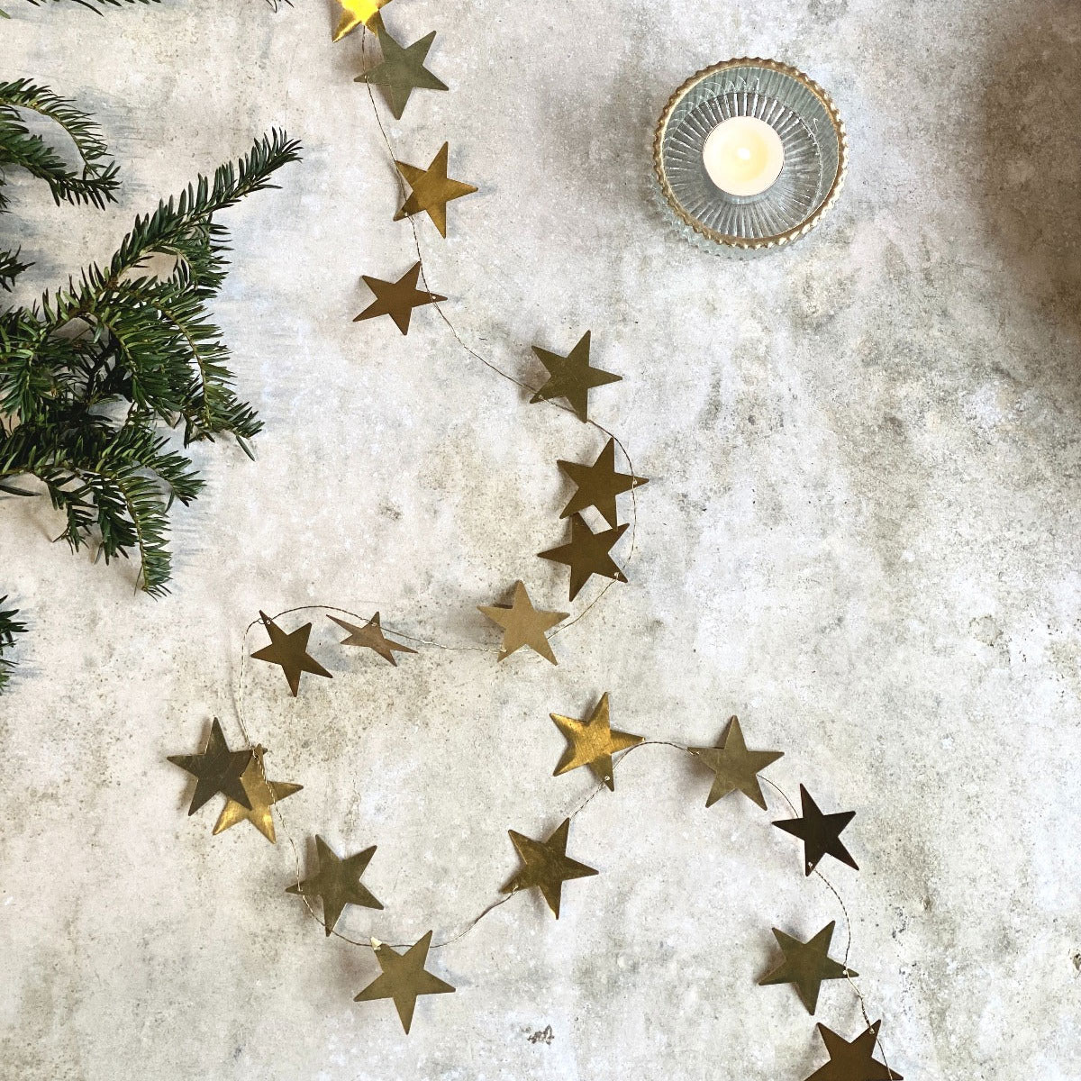 Elegant stjärngirlang i mässing – perfekt för att ge ditt hem en stämningsfull känsla i juletid eller året om. Girlangen består av många små stjärnor som hänger tätt och vackert längs en 183 cm lång kedja.