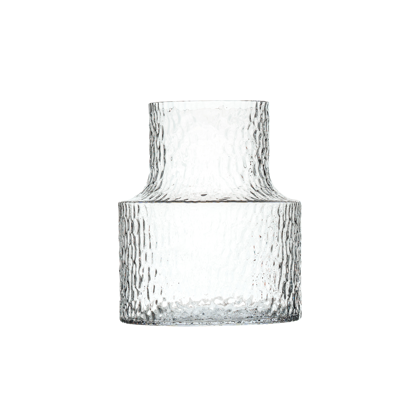 Vasen har en enkel och tidlös form som passar lika bra till en hel bukett som till en ensam kvist. Varje vas är handblåst av skickliga glasblåsare på Skrufs glasbruk i Småland, vilket gör varje exemplar unikt.