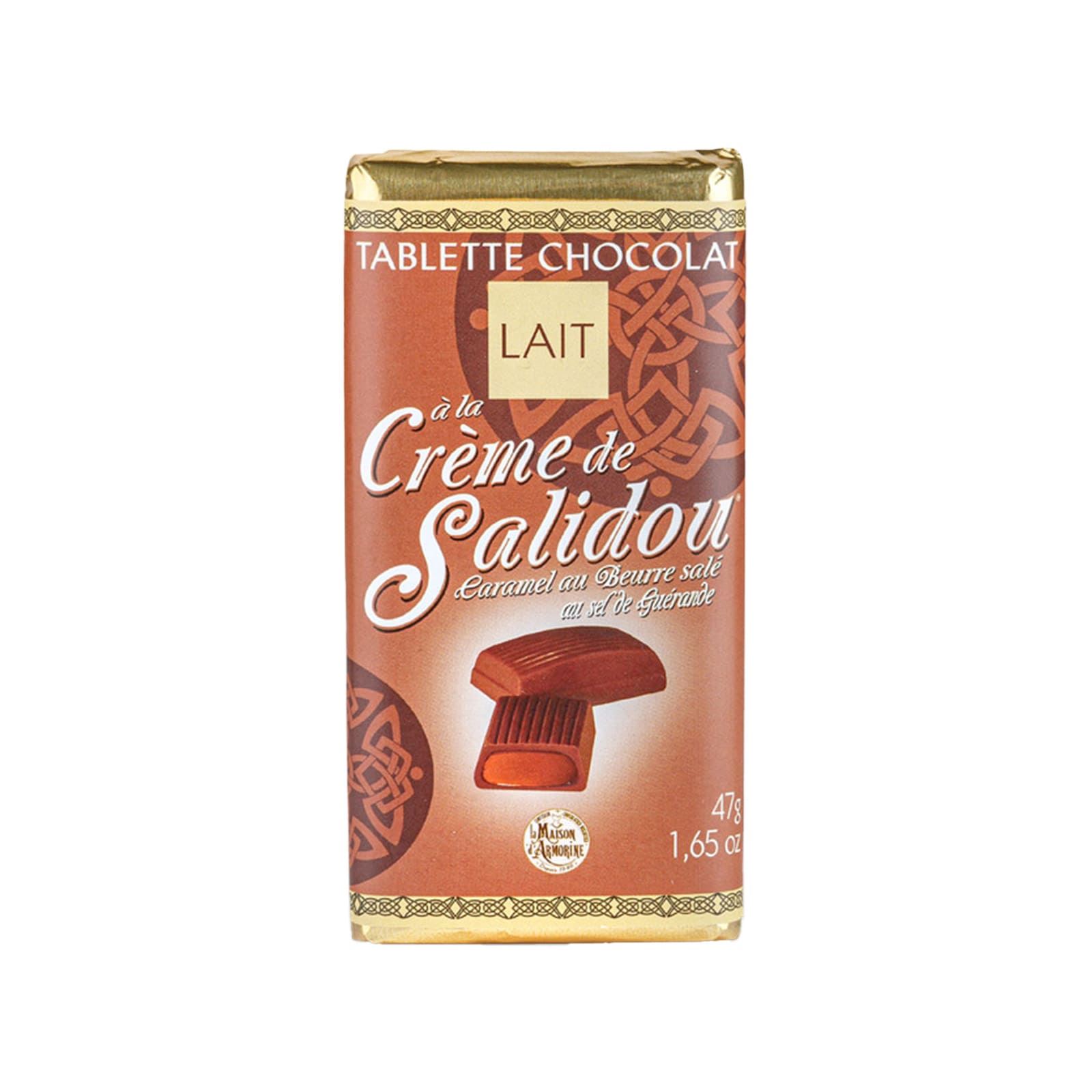 Mjölkchoklad 41% fylld med krämig kola gjord på färsk grädde, rörsocker och havssalt från Guérande från franska smörkolemästarna La Maison d’Armorine.