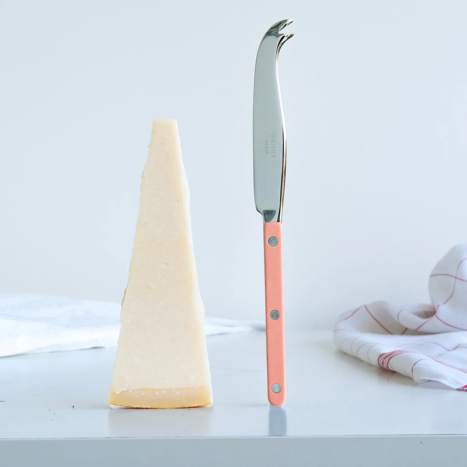 Med Bistrot -samlingen inspirerades vi av några av våra favoritplatser: restauranger, terrasser och kaféer. När vi utformade detta bestick ville vi troget fånga atmosfären samtidigt som vi lägger till en modern touch: stylingen är enkel, nitarna är synliga, medan färgerna och materialen sticker ut fint. Från rött till blått, inte glömma de fantastiska materialen med horn- eller sköldpaddseffekter. Tillgänglig med glans eller vintage finish, vi är säkra på att du kommer att njuta av den här samlingen, som är utformad för att vara både traditionell och modern samtidigt. Fördelen med denna ostkniv är att den lätt kan användas för att servera dina gäster tack vare de två tänderna i slutet av bladet. Dess ovanliga form gör den till en elegant och effektiv kniv för att perfekt skära en mängd olika ostar.