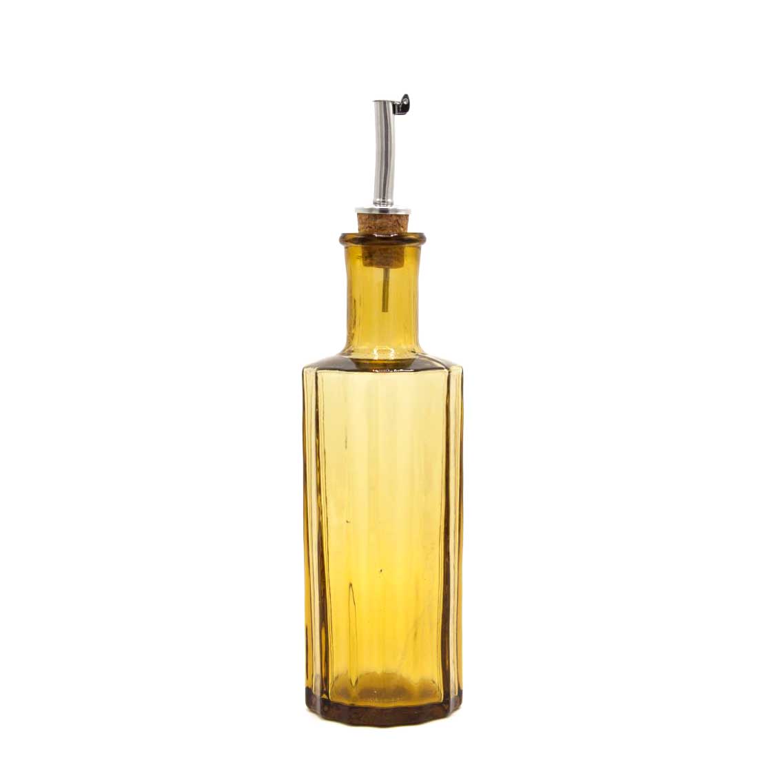 Smidig hällning från denna olja-/vinägerflaska inspirerad av Art Deco. Indiska hantverkare har skapat denna munblåsta flaska av återvunnet glas och därför kan den ha naturliga ojämnheter.