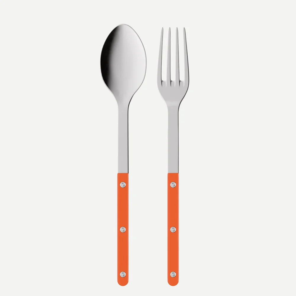 Elegant och tidlöst serveringsset från franska Sabre Paris. Setet består av en serveringssked och en serveringsgaffel – perfekta för allt från sallader till pasta eller uppläggning av större rätter. Serien Bistro kännetecknas av sin klassiska design med nitar i handtaget och en balanserad vikt som gör besticken både bekväma och vackra att använda.