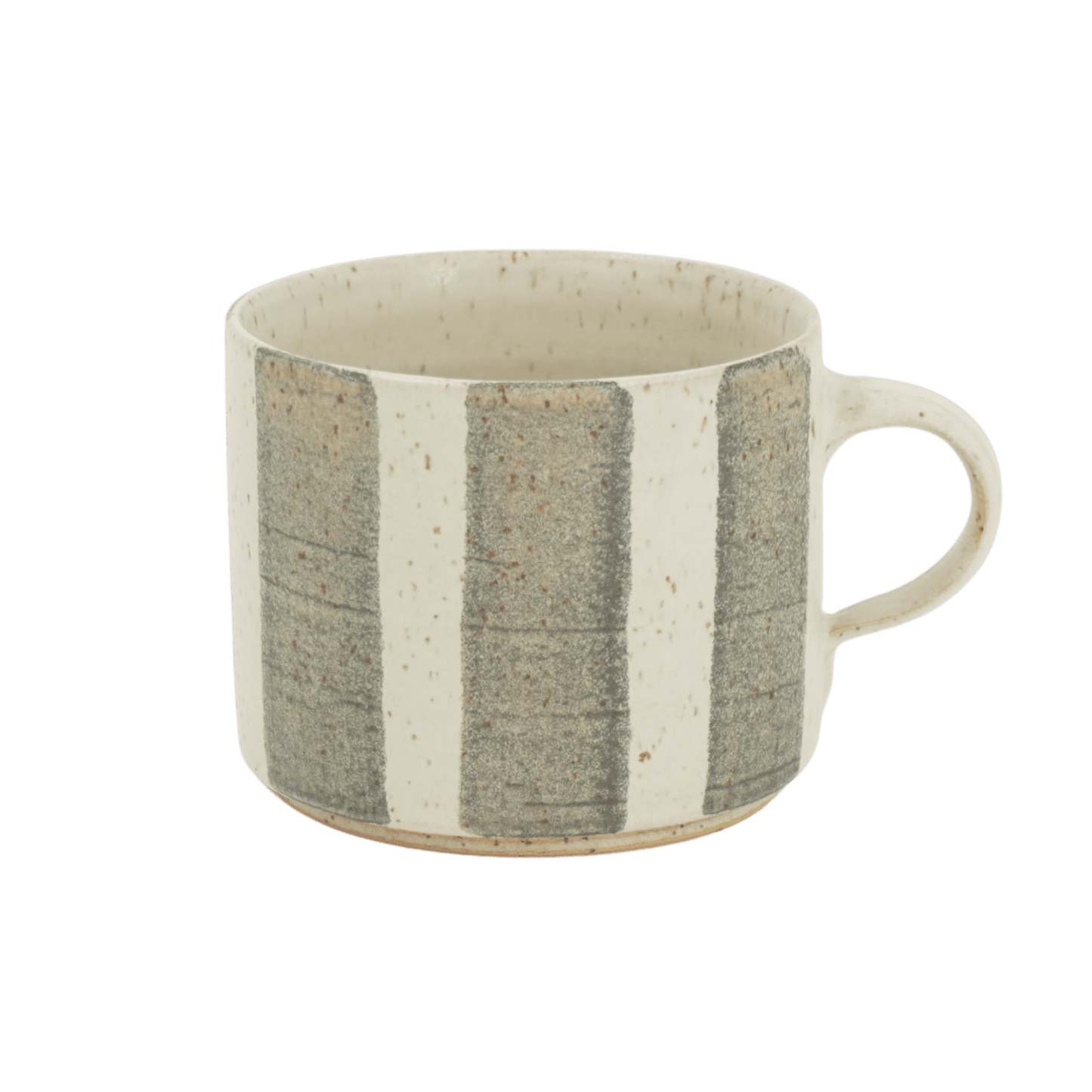 Njut av en varm kopp te i en större handgjord kopp från servisen Öland – en hyllning till den öländska naturen och hantverkets tradition. Den finrandiga designen med träbruna ränder på havrefärgad botten skapar en varm, grafisk känsla som passar i både moderna och klassiska hem.