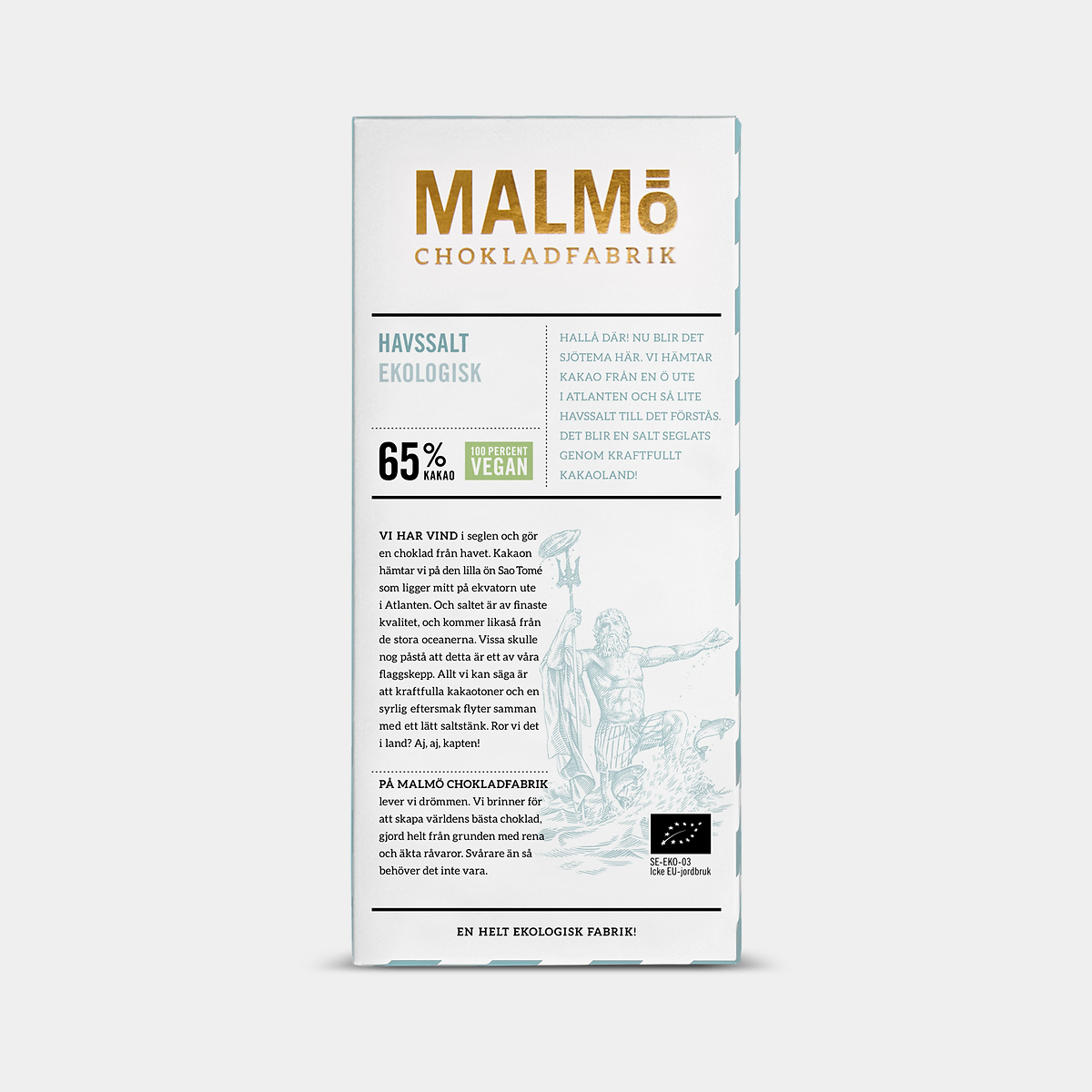 Hallå där! Nu blir det sjötema här. Vi hämtar kakao från en ö ute i Atlanten och så lite havssalt till det förstås. Det blir en salt seglats genom kraftfullt kakaoland! Vi har vind i seglen och gör en choklad från havet. Kakaon hämtar vi på den lilla ön Sao Tomé som ligger mitt på ekvatorn ute i Atlanten. Och saltet är av finaste kvalitet, och kommer likaså från de stora oceanerna. Vissa skulle påstå att detta är ett av våra flaggskepp. Allt vi kan säga är att kraftfulla kakaotoner och en syrlig eftersmak flyter samman med ett lätt saltstänk. Ror vi det i land? Aj, aj, kapten!