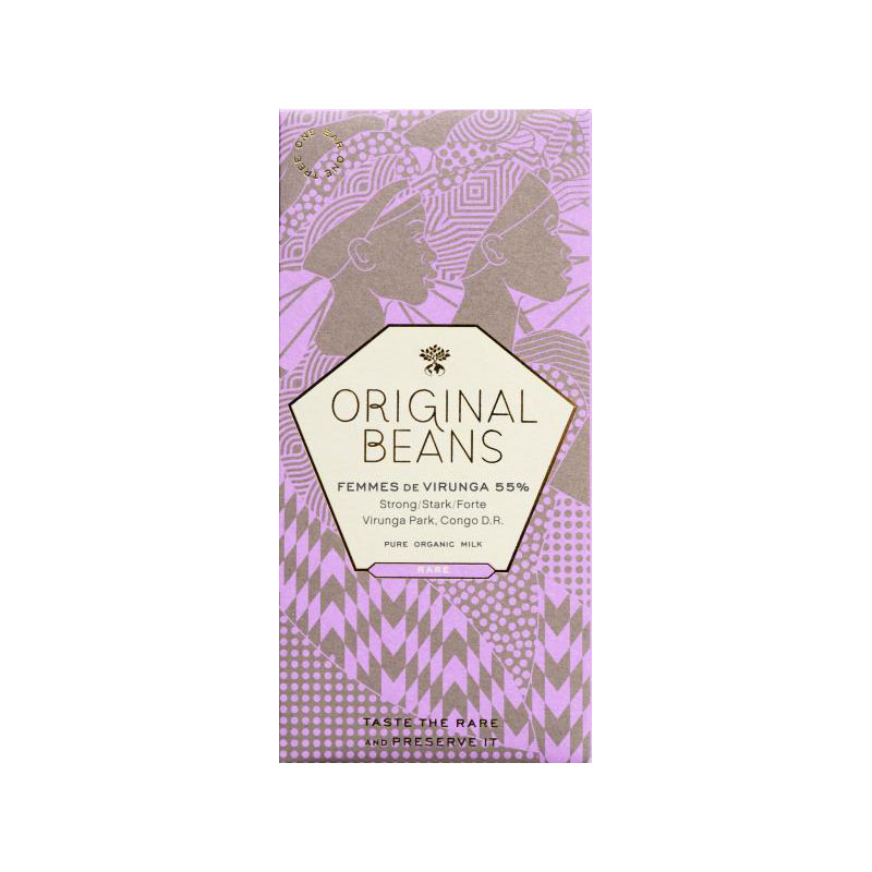 Femmes De Virunga är en ekologisk mjölkchoklad som stödjer kvinnliga kakaobönder som bevarar Afrikas äldsta naturpark, i Östra Kongo.