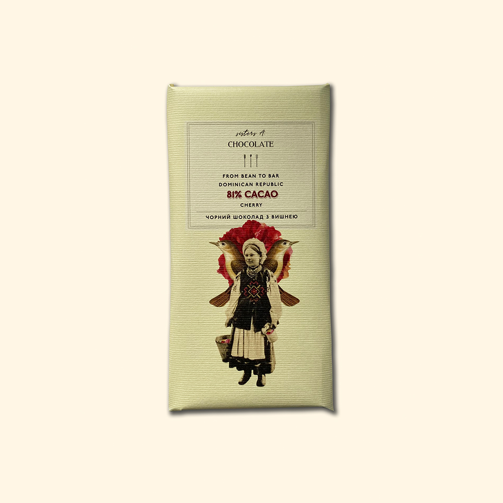 Dark Chocolate 81 % – Dominikanska Republiken med körsbär Smakrik och intensiv bean-to-bar-choklad från Sisters A Chocolate i Lutsk, Ukraina. Tillverkad på noggrant utvalda kakaobönor från kooperativet Öko Caribe i Dominikanska Republiken – en region känd för sitt aromatiska och högkvalitativa kakao.
