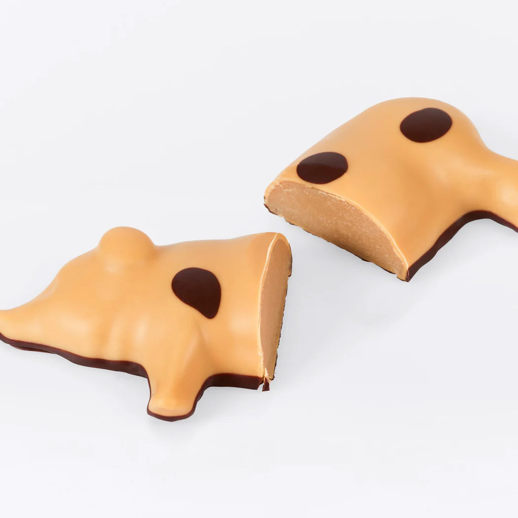 Julegris i ren marsipan, gjord på stenvalsade mandlar från Medelhavet, täckt med Summerbird´s prisbelönta och populära Amber Classic-choklad och slutligen dekorerad med mörk choklad Amazonas 61%.
