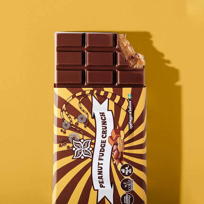 En fyllig chokladbar med len jordnötsfudge och härligt crunch som ger både krämighet och krisp i varje tugga. Kombinationen av salta jordnötter och söt choklad skapar en perfekt balanserad smakupplevelse.