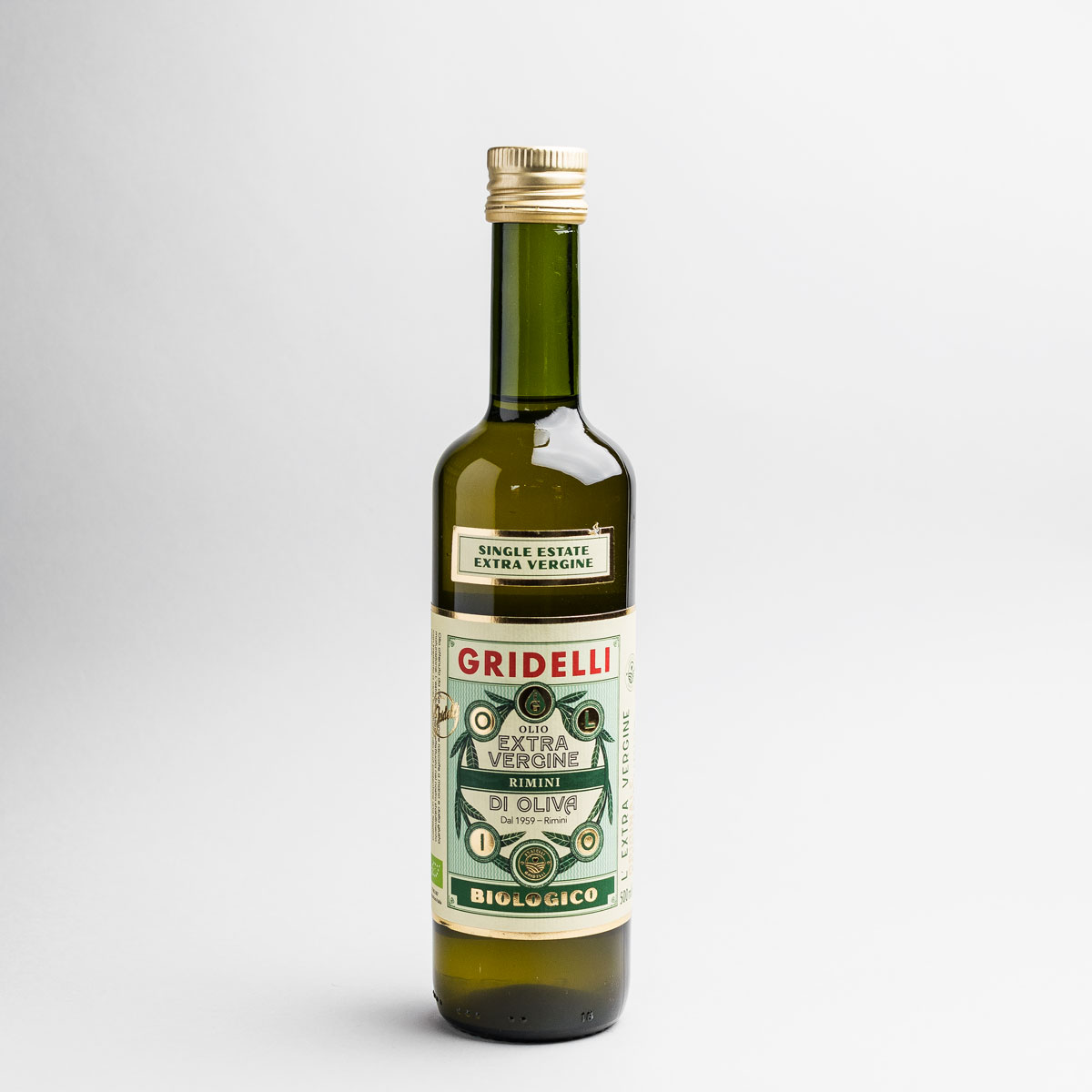 Ekologisk olivolja av högsta kvalitet, extra vergine. Gridelli Rimini är gjord på en noggrant utvald blandning av Correggiolo och Frantoio-oliver. Oljan har en len och pepprig smak som gör den utmärkt att ha på matbordet för att avnjutas ”rå”.