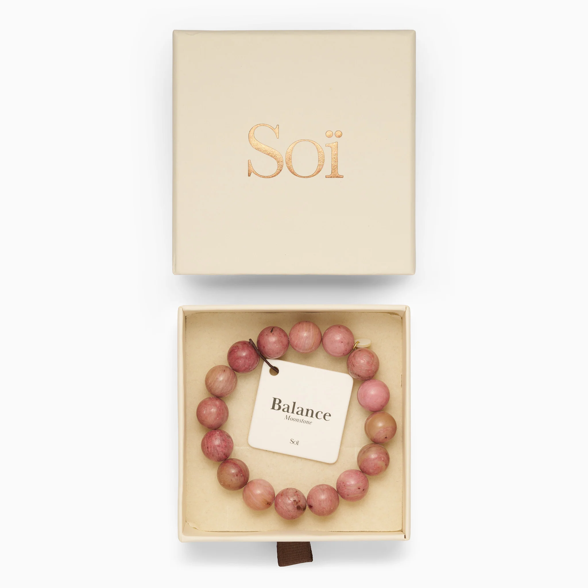 Det Chunky Rhodonit Stretch-armbandet är utformat för att stödja dig i att hitta balans, inre frid och emotionell harmoni. Rhodonit förknippas med jämvikt och tros bidra till att skapa stabilitet i både hjärta och sinne. De mjuka rosa nyanserna symboliserar kärlek, förståelse och styrka i sårbarhet. Armbandet är tillverkat med omsorg och precision och är mer än bara ett smycke; det är ett uttryck för balans och naturlig skönhet.