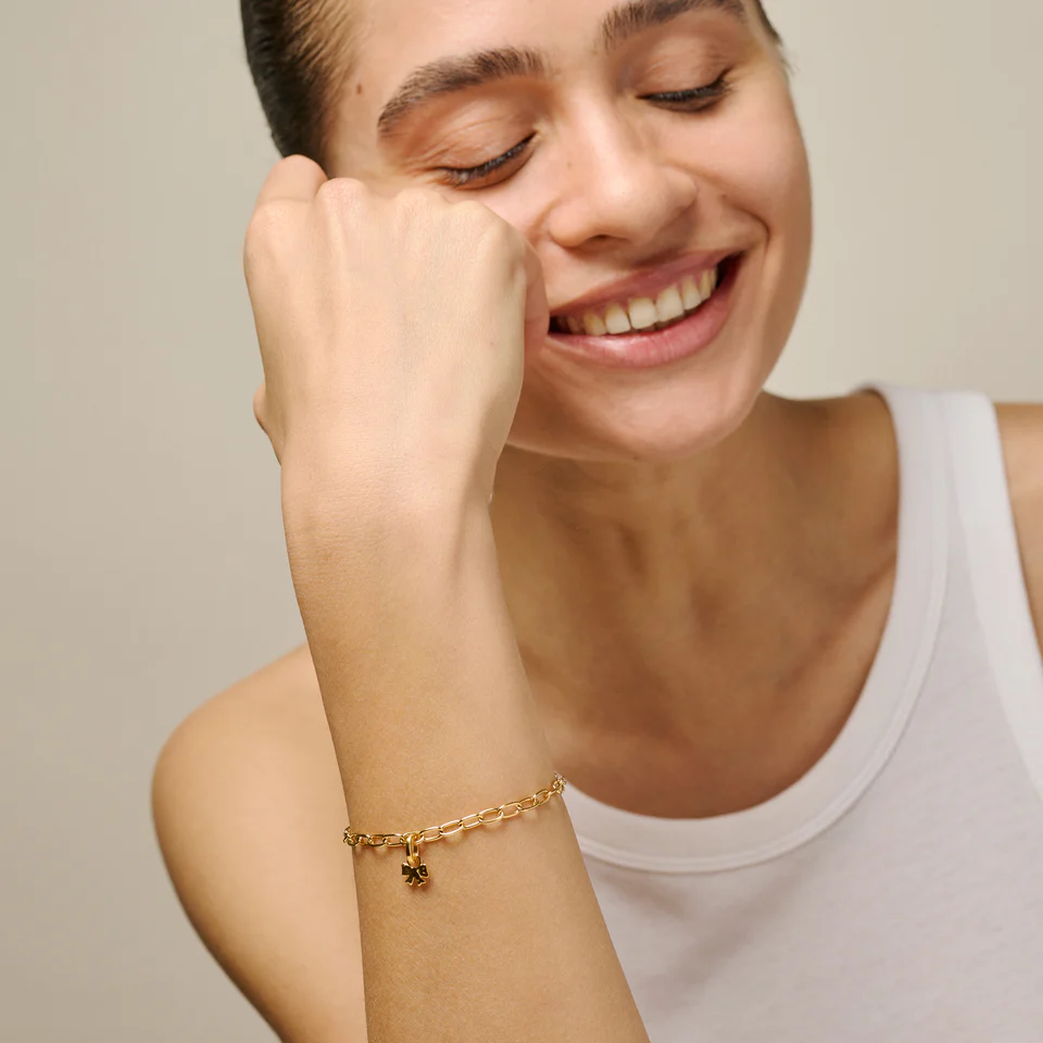 Baby Bow är en söt och feminin charm som ger en lekfull elegans till din look. Den klassiska bågformen är en symbol för nåd, lätthet och en touch av nostalgi – som en liten gåva som du bär med dig varje dag. Låsmekanismen på Darling Bow-charmen kan tas bort, och med den kvarvarande öglan kan du fästa bågen på en stor del av våra hoops. Hänget är speciellt utformat för vår armbands- och halsbandsserie som kallas Charm, samt våra enkla halsband och armband.