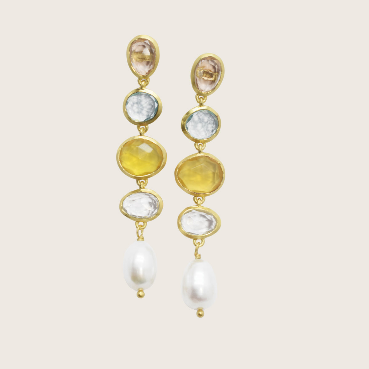 Minae-örhängena har ett lätt och organiskt uttryck som rör sig vackert med ljuset. Förgylld mässing ger en varm ton och tidlös elegans.