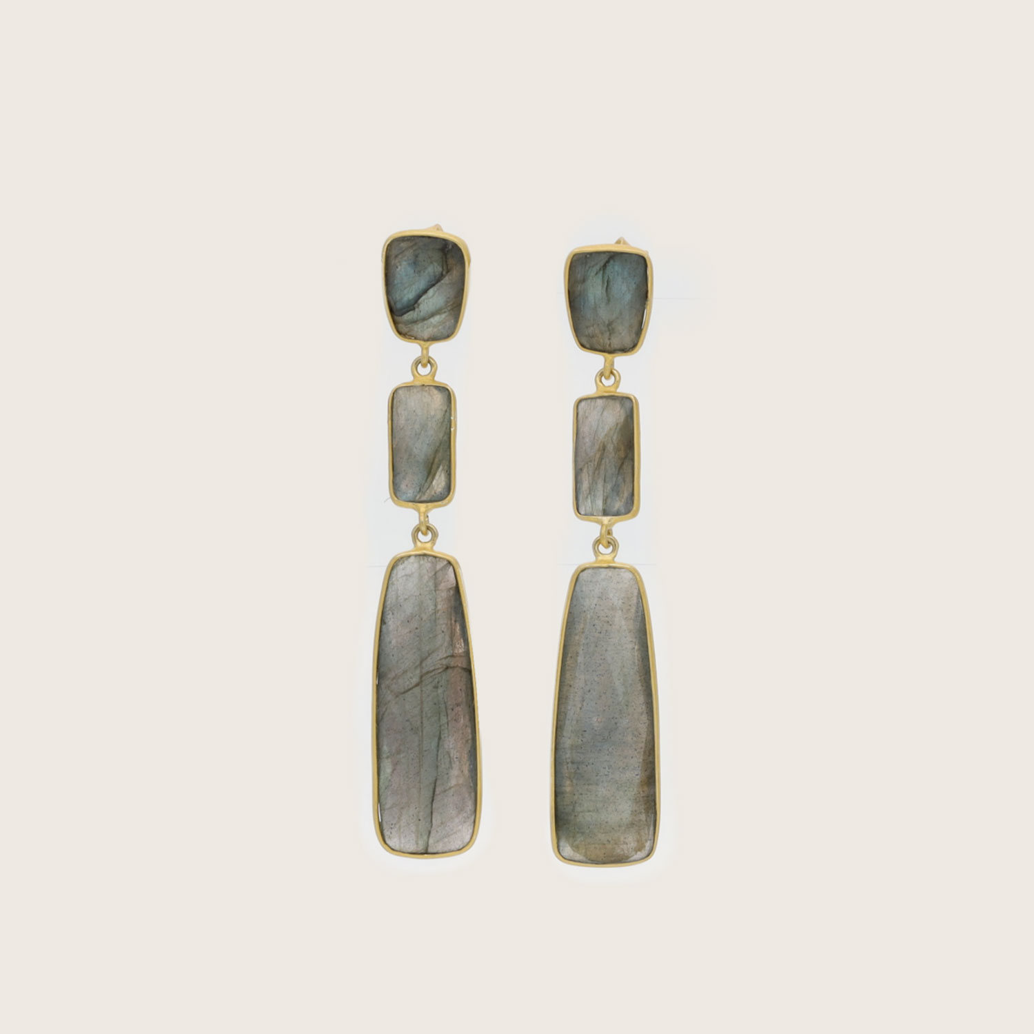 Tota med labradorit fångar ljuset med sitt levande skimmer. Den förgyllda mässingen förstärker stenens djup och skapar ett sofistikerat men personligt uttryck.
