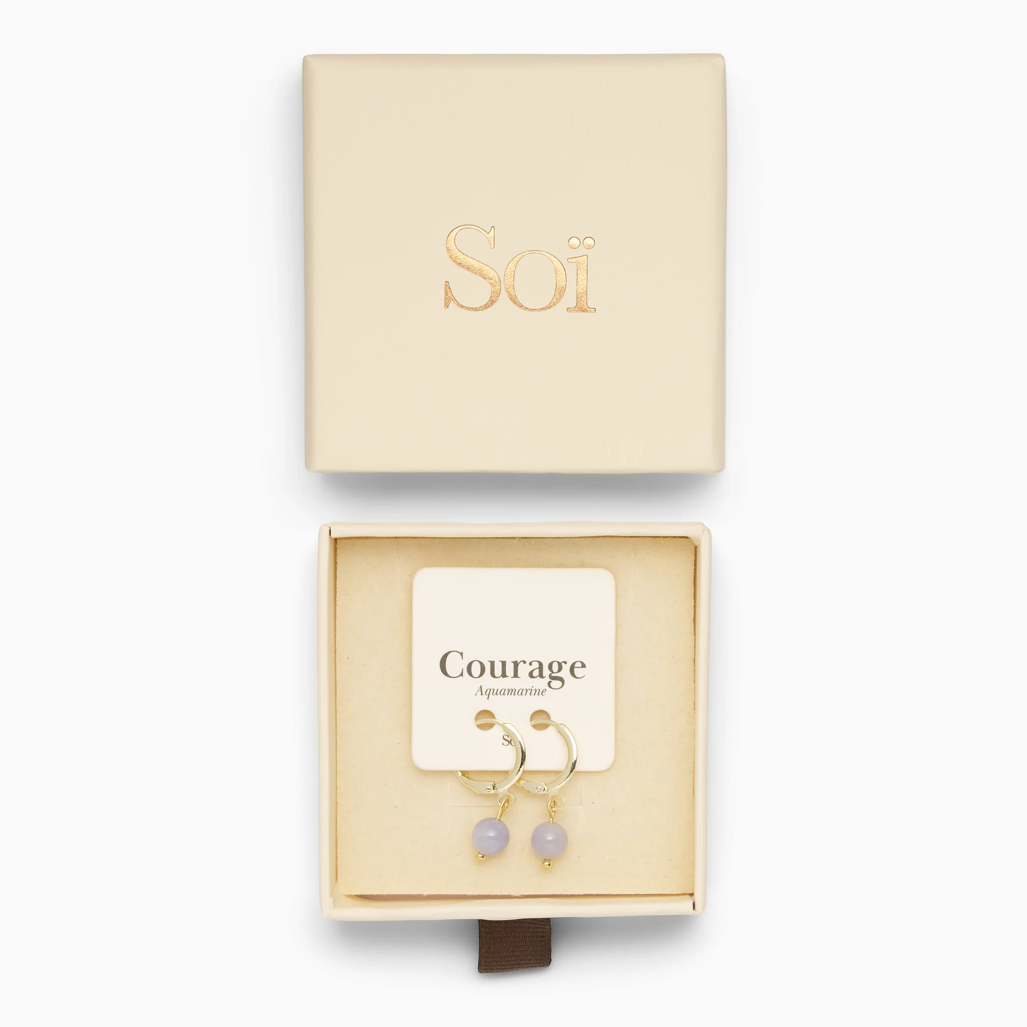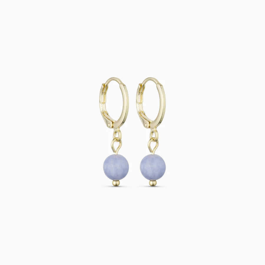 Ava Aquamarine-örhängena är utformade för att hjälpa dig att hitta mer mod, vara beskyddande och finna harmoni. Akvamarin tros ha lugnande egenskaper som kan hjälpa till att lindra stress och ångest. Akvamarinens blå toner representerar klarhet och inre frid. Örhängena är tillverkade med omsorg och finess och är mer än bara ett smycke; de är en symbol för balans och positivitet.