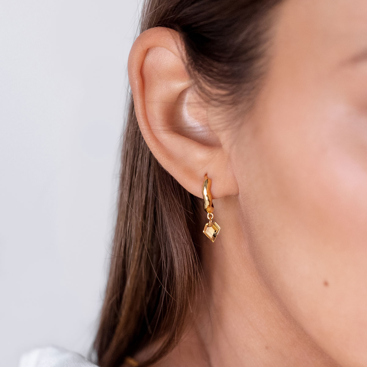Färgglada örhängen med specialslipade citriner. Örhängena är formade i ett vackert vågigt mönster med hamrad yta. Ädelstenarna är noggrant slipade för att framhäva deras naturliga skönhet. Tillverkat i 100% återvunnet sterlingsilver, pläterat med 18K guld.